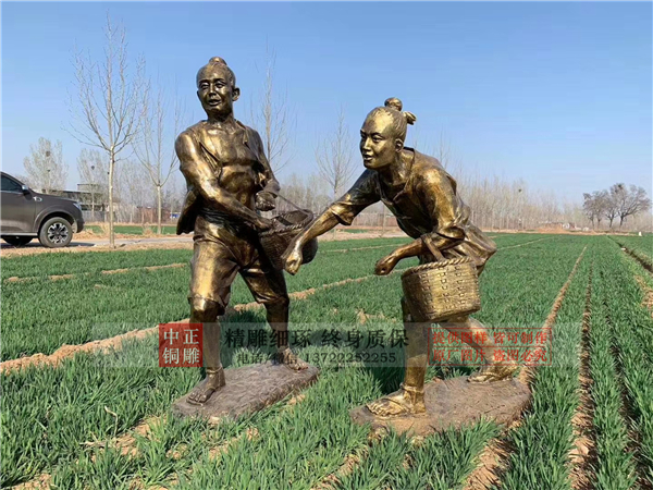 慶豐收主題銅雕塑,是以農(nóng)民、土地、糧食、農(nóng)具等等為核心元素,我國(guó)的傳統(tǒng)農(nóng)業(yè)曾長(zhǎng)期領(lǐng)先于世界各國(guó)。我國(guó)的傳統(tǒng)農(nóng)業(yè)之所以能夠數(shù)千年長(zhǎng)盛不衰,主要是由于我們的祖先創(chuàng)造了一整套的精耕細(xì)作、用地養(yǎng)地的技術(shù)體系,并在農(nóng)藝、農(nóng)具、土地利用率和土地生產(chǎn)率等方面長(zhǎng)期處于世界領(lǐng)先地位。這主要得益于中國(guó)農(nóng)業(yè)的諸多世代相傳的優(yōu)良傳統(tǒng)和農(nóng)耕文化。