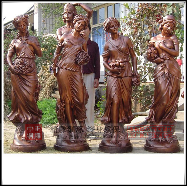 四季女神銅像雕塑也是西方人物雕塑中的常見類型,四個不同的女神雕塑形象,代表著四季的更替,具有著神圣的意義,且四個人物銅像造型各異,寓意豐富,常見于園林廣場、城市景點等場所中。