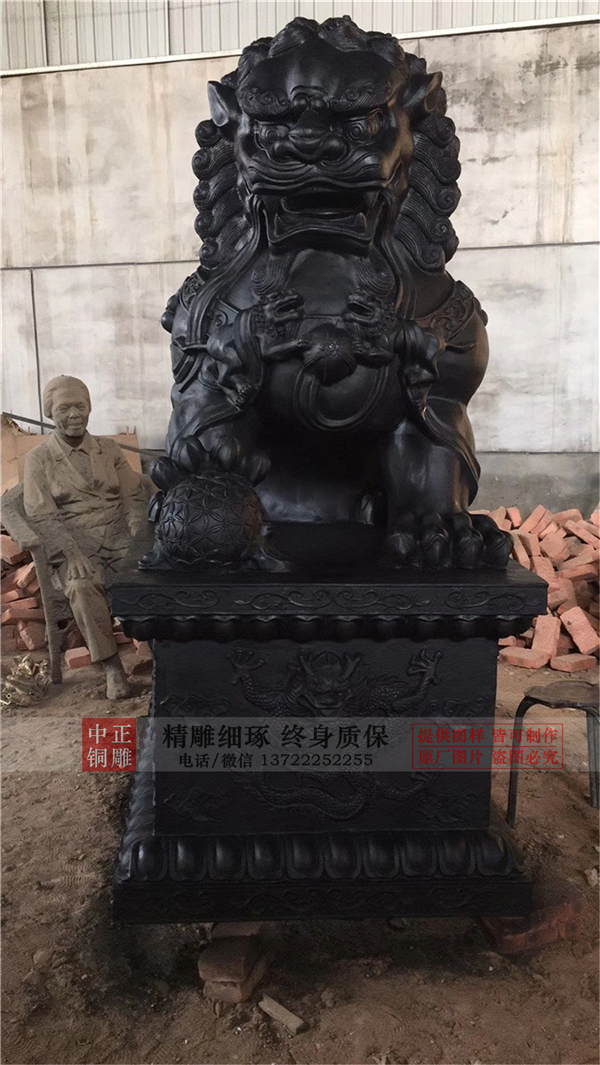 門的銅獅子的擺放是有規矩的。一般來說,都是一雄一雌,成雙成對的,而且一般都是左雄右雌,符合中國傳統男左女右的陰陽哲學。放在門口左側的雄獅一般都雕成右前爪玩弄繡球或者兩前爪之間方一個繡球;門口右側雌獅則雕成左前爪撫摸幼獅或者兩前爪之間臥一幼獅。 右前爪玩弄繡球的雄獅,左前爪撫摸幼獅的雌獅。石獅子在大門兩側的擺放都是以人從大門里出來的方向為參照的。當人從大門里出來時,雄獅應該在人的左側,而雌獅則是在人的右側。而從門外進入時,則剛好相反。