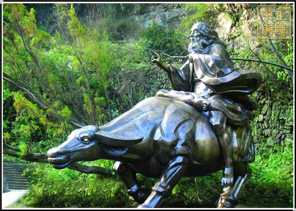 人物雕塑在一定的程度上使城市活躍起來,因為矗立在各個城市的人物雕塑不僅是為美化環境而建立,它的存在還對現代城市的生存極具 有意義。在我們的日常生活和課本上可以看到曾經為我們幸福的現代生活做出的貢獻和留下萬古的文化遺產,這些曾對國家做出過貢獻的名人 ,后世子孫為紀念他們曾留下的足跡,就用人物傳記、書籍、繪畫、雕塑等紀念他們。中正銅雕-室外老子騎牛銅雕塑、室外老子騎牛銅雕塑價格、室外老子騎牛銅雕塑廠家,我廠是一家以設計、制作、安裝為一體的發展型企業。公司坐落在中國銅雕之鄉---河北唐縣,成立于1984年。公司自成立以來,以優質的雕塑工藝,優異的性價比,一體化的銷售網絡,高效、完善的售后服務,飛速發展。成為了擁有設計、銷售、生產、安裝、維護為一體的銅雕塑制作商。