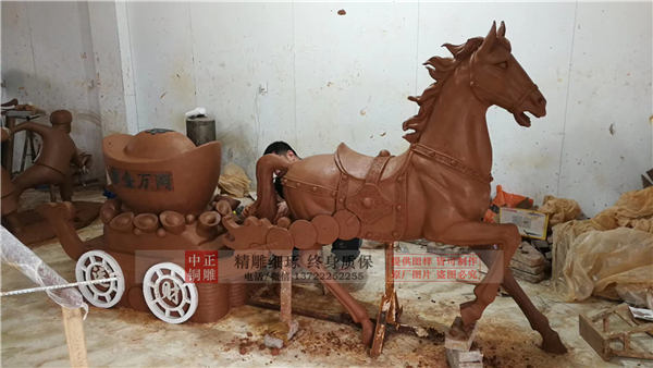 縱觀中國古代的雕塑馬,在不同的朝代,雕塑馬的造型也不盡相同。然而,就算處在同一個朝代,不同的雕塑家所塑造的馬也不一樣,論其原因,就在于每個人腦海中對于馬的意象造型都是不一樣的。人具有主觀能動性,在這個主觀能動的支配下,意識對馬這個客體的反應也是不同的,譬如,有的雕塑家手下的馬是仰天長嘯的瀟灑,而有的則是體型嬌小,馴服聽命。中正銅雕-定制銅馬雕塑廠,定制銅馬雕塑廠家,定制大型銅馬雕塑廠,我公司實行現代化企業管理,成功導入TPS生產管理系統,形成集塑制泥塑模型、泥稿后翻制模具、翻制石膏模型、工藝師加工制作、營銷為一體化作業的生產線,加上先進的銅雕加工設備,優秀的美術設計師,雕刻經驗豐富的制作人員, 造型精美,精雕細琢,深受客戶的好評。